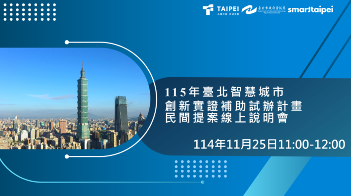 臺北市政府資訊局為推動「臺北智慧城市創新實證補助試辦計畫」(以下簡稱本試辦計畫),以「 AI 應用驅動市政建設創新」為主軸,蒐集臺北市政府所屬機關之市政需求,接續向民間徵求創新解決方案,透 ...更多